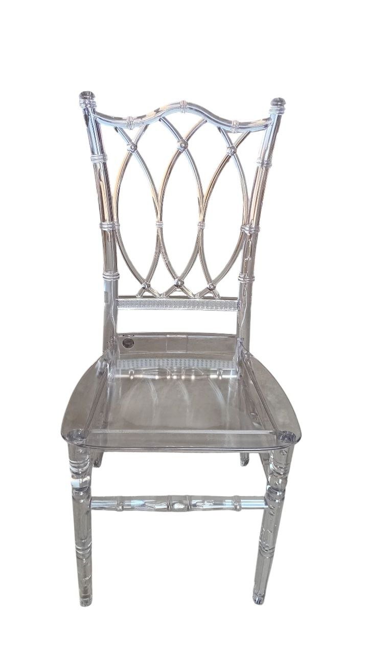 الكرسي الشفاف بتصميم الألماسات المتداخلة في الظهر هو الخيار العصري لمن يسعى للأناقة دون تعقيد. مثالي للمناسبات، المطاعم الفاخرة، أو للديكور المنزلي .